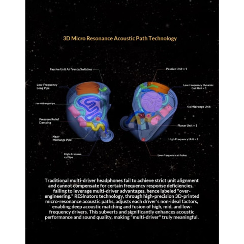 ครอสโอเวอร์เครือข่าย RLC ช่วยจัดระเบียบสัญญาณและลดเรโซแนนซ์ที่ไม่ต้องการ เพื่อความใสคมแบบหูฟังที่ใช้ไดรเวอร์ EST พร้อมการตอบสนองความถี่ที่กว้างถึง 35kHz และระบบระบายแรงดันแบบ High-Damping ที่ช่วยให้ ใส่สบาย ฟังได้นาน ไม่อึดอัดดีไซน์แรงบันดาลใจจากดาวพฤหัสบดี + วัสดุเรซินเกรดการแพทย์