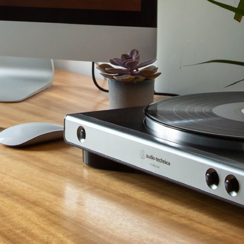 Audio Technica AT-LP60XUSB Belt-Drive Turntable (USB & Analog) เครื่องเล่นแผ่นเสียงระบบอัตโนมัติเต็มรูปแบบ ที่ตอบโจทย์ทั้งสายไวนิลมือใหม่และคนที่อยากแปลงแผ่นเสียงเป็นไฟล์ดิจิทัลในเครื่องคอมพิวเตอร์ได้ง่ายๆ ภายในเครื่องมี Phono Preamp ในตัว พร้อมสายเชื่อมต่อมาให้ครบทั้ง RCA และ USB จึงต่อใช้งานกับลำโพง/แอมป์/เครื่องเสียง หรือ PC/Mac ได้ทันที ให้เสียงสเตอริโอคมชัด เพลิดเพลินกับเสน่ห์ของแผ่นเสียงได้แบบไม่ยุ่งยาก
