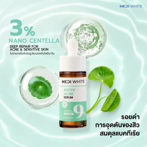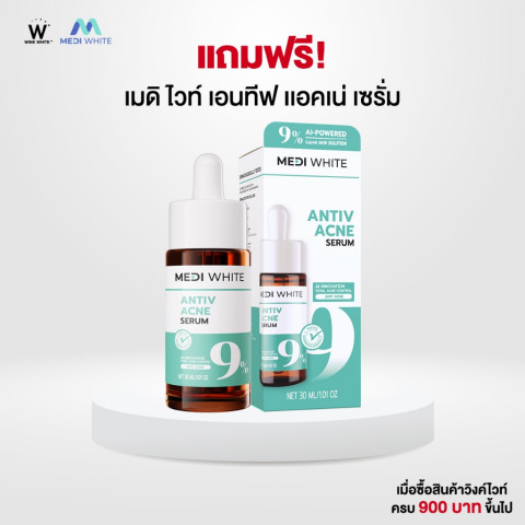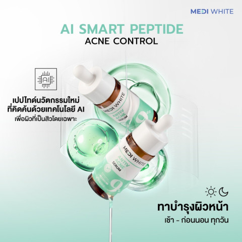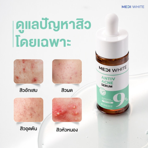 [แถมฟรี] MEDI WHITE ANTIV ACNE SERUM เมดิ ไวท์ เอนทีฟ แอคเน่ เซรั่ม เซรั่มลดสิวด้วยนวัตกรรม AI ACTIVE เพื่อดูแลผิวที่มีปัญหาสิวและมีแนวโน้มเป็นสิวง่ายอย่างตรงจุด ฟื้นผิวใสแบบไม่ทำร้ายผิว ช่วยลดความมัน ลดการอักเสบ พร้อมดูแลรอยสิวให้ผิวดูเรียบเนียนขึ้น โดยไม่ทำให้ผิวแห้งหรือลอก