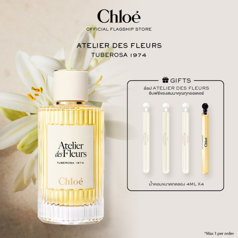 Chloé Atelier des Fleurs Tuberosa 1974 Eau de Parfum for Women 150ml (5.4oz) น้ำหอมผู้หญิงระดับลักชัวรีที่ถ่ายทอดเสน่ห์ของ “ทูเบอโรส” ในมิติที่หรูหรา นุ่มลึก และชวนหลงใหล ให้กลิ่นดอกไม้สีขาวที่โดดเด่นแบบมีเอกลักษณ์ เหมาะสำหรับผู้หญิงที่ต้องการกลิ่นซิกเนเจอร์ดูแพง มีรสนิยม และน่าจดจำในทุกโอกาส
