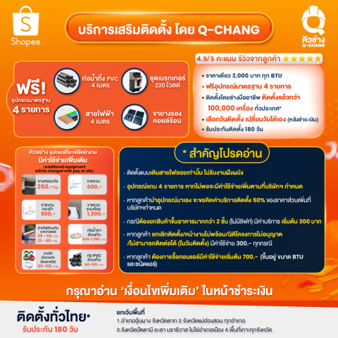 รับประกันคอมเพรสเซอร์ 5 ปี ตามเงื่อนไขผู้ผลิต