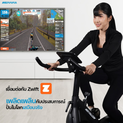 ยกระดับการออกกำลังกายที่บ้านให้อยู่ในระดับสตูดิโอ ด้วย MERRIRA จักรยาน Spin Bike ระบบแม่เหล็ก รุ่น Neo Falcon MB-600 จักรยานออกกำลังกายระบบแม่เหล็ก QMR (Quiet Magnetic Resistance) ปั่นนุ่ม เงียบสนิท พร้อมจานล้อ Flywheel หนัก 12 กก. รองรับทั้งการนั่งปั่นและยืนปั่น เหมาะทั้งคนเริ่มออกกำลังกาย ลดน้ำหนัก ไปจนถึงสายปั่นจริงจังที่ต้องการซ้อมอย่างต่อเนื่อง เชื่อมต่อแอปออกกำลังกายยอดนิยมอย่าง Zwift ได้ ให้คุณสนุกกับการปั่นเหมือนอยู่บนถนนจริง