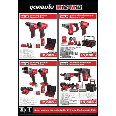 Milwaukee ชุดคอมโบ โปรโมชั่น Q3/68 ทางเลือกคุ้มค่าสำหรับสายงานก่อสร้างที่ต้องการเครื่องมือช่างคุณภาพระดับมืออาชีพในชุดเดียว ช่วยให้ออกงานได้คล่องตัว ครอบคลุมการใช้งานพื้นฐานถึงงานหนัก พร้อมความทนทานตามมาตรฐาน Milwaukee เหมาะทั้งช่างมืออาชีพ ผู้รับเหมา และทีมงานหน้างานที่ต้องการความพร้อมใช้งานตลอดวัน