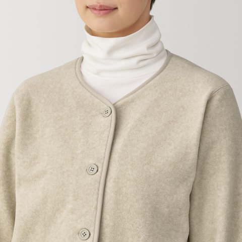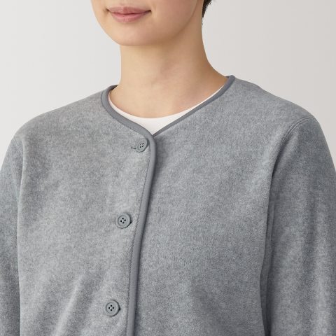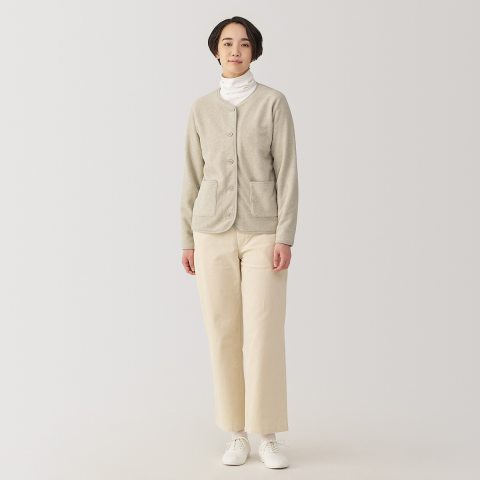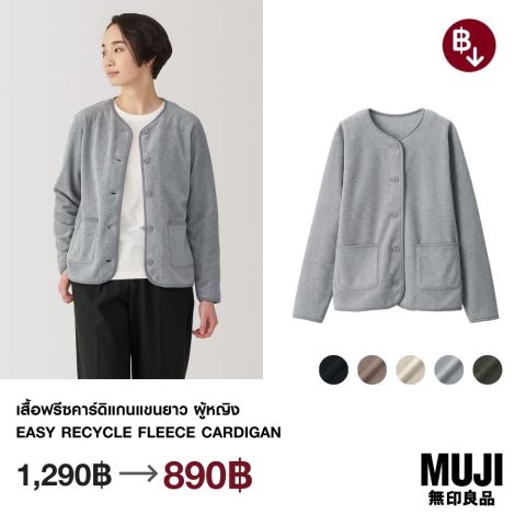 สัมผัสความนุ่ม อบอุ่น และสบายในทุกวันด้วย มูจิ เสื้อฟรีซคาร์ดิแกนแขนยาว ผู้หญิง - MUJI Easy Recycle Fleece Cardigan คาร์ดิแกนดีไซน์เรียบง่ายสไตล์มูจิ ที่ใส่ได้ทั้งทำงาน วันสบายๆ หรือใส่ทับระหว่างเดินทาง มาพร้อมเนื้อผ้าฟรีซที่ให้ความอบอุ่นแต่ยังคงความเบา ใส่สบาย ไม่เทอะทะ และดูสุภาพเรียบร้อยในทุกโอกาส