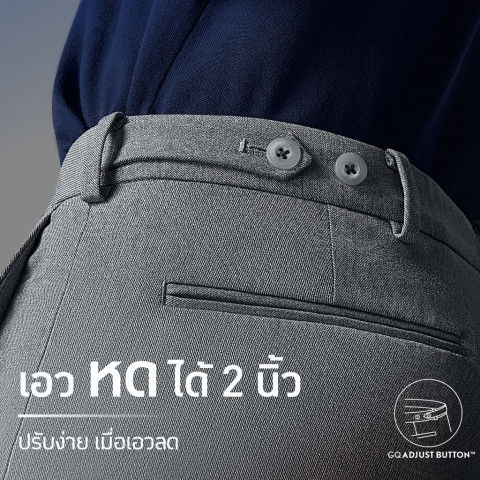 GQ Adjust Button เอวหดได้ มาพร้อมอินทรธนูกระดุมด้านใน ช่วยปรับขนาดรอบเอวให้เล็กลงได้ถึงประมาณ 2 นิ้ว ไม่ว่าคุณจะผอมลง หรือสวมเข็มขัดก็สามารถปรับให้ฟิตได้ลงตัวโดยไม่ต้องเปลี่ยนไซซ์