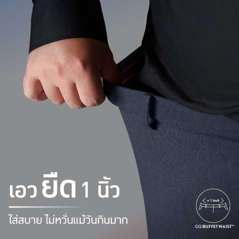 GQ Buffet Waist ขอบเอวยืดขยายได้ ขอบเอวดีไซน์พิเศษที่สามารถยืดขยายออกได้ประมาณ 1 นิ้ว รองรับน้ำหนักตัวที่อาจเปลี่ยนแปลง หรือหลังมื้ออาหารหนักๆ ช่วยให้คุณยังรู้สึกสบายโดยไม่ต้องปลดกระดุม