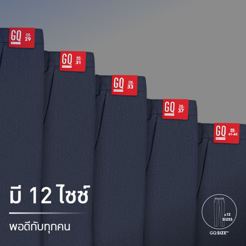 GQ Size มีให้เลือกถึง 12 ไซซ์ เพื่อความพอดีและสวมใส่สบายที่สุด สามารถเลือกไซซ์ให้เหมาะกับสัดส่วนของคุณได้อย่างละเอียด ลดปัญหากางเกงหลวมหรือคับเกินไป