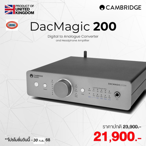 ด้วยราคาที่สมเหตุสมผลและประสิทธิภาพระดับไฮเอนด์ CAMBRIDGE DACMAGIC 200M จึงเป็นตัวเลือกที่ยอดเยี่ยมสำหรับผู้ที่ต้องการอัปเกรดคุณภาพเสียงจากคอมพิวเตอร์ เครื่องเล่นเพลง หรือชุดโฮมเธียเตอร์ ให้กลายเป็นประสบการณ์การฟังที่มีรายละเอียด ละเมียด และทรงพลังยิ่งขึ้นในทุกแนวเพลง