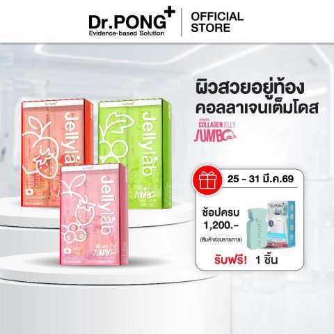 ให้ทุกวันของคุณเป็นวันผิวสวยด้วย Dr.PONG Jumbo Jellylab Collagen Dipeptide 10,000 mg เจลลี่คอลลาเจน น้ำตาล 0% ตัวช่วยดูแลผิวและรูปร่างที่อร่อย ง่าย และอยู่ท้องในซองเดียว