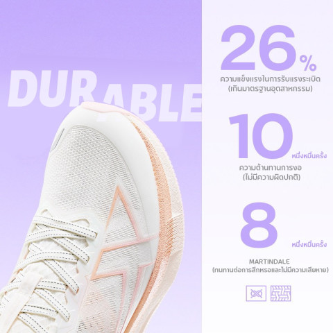 น้ำหนักเบาเป็นพิเศษ ลดภาระให้ขาและข้อเท้า เหมาะสำหรับวิ่งระยะไกลหรือวิ่งเป็นประจำ