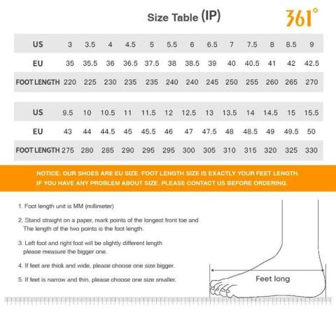 ข้อมูลขนาด: รุ่นนี้ใช้ไซซ์มาตรฐานสากลแบบ EU โดยความยาวฟุต (Foot Length) คือความยาวเท้าจริงของคุณ
