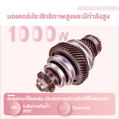 กำลังมอเตอร์ 1000W แรงพอสำหรับการขับขี่ในเมืองและทางลาดชันเล็กน้อย ให้อัตราเร่งลื่นไหล