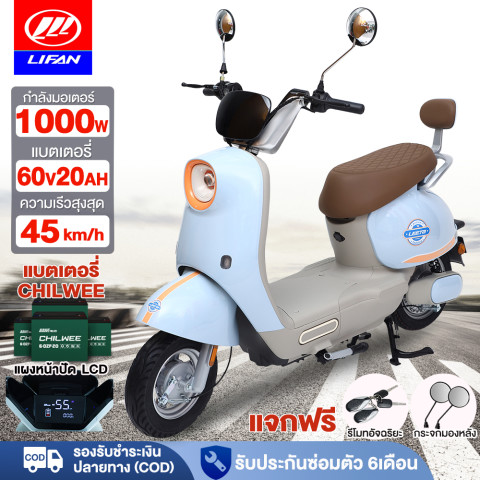 เปลี่ยนทุกวันของคุณให้เป็นการเดินทางที่ง่าย สนุก และประหยัด ด้วย LIFAN มอเตอร์ไซค์ไฟฟ้า 1000W 60V20AH ดีไซน์น่ารัก ขี่สบาย ใช้งานง่าย เหมาะสำหรับผู้ใหญ่ที่มองหาพาหนะส่วนตัวสำหรับขับขี่ในเมืองหรือในหมู่บ้าน ทั้งใกล้และไกล ตอบโจทย์ทั้งไปทำงาน ไปเรียน หรือขี่เล่นในชีวิตประจำวัน