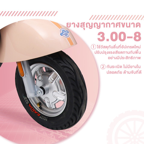 ยางสูญญากาศกันลื่นขนาด 3.00-8 ยึดเกาะถนนดี ลดโอกาสยางรั่ว และให้การทรงตัวที่มั่นคง