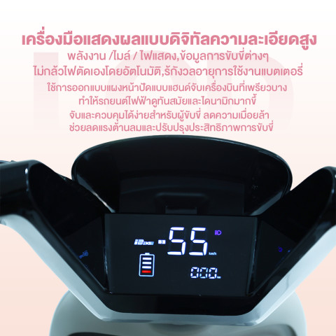 หน้าปัดดิจิทัล แสดงข้อมูลความเร็ว ระดับแบตเตอรี่ และสถานะต่างๆ อ่านง่ายแม้กลางวัน