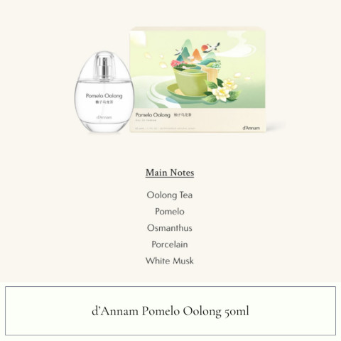d'Annam Pomelo Oolong Eau de Parfum 50ml น้ำหอมกลิ่นยูนีคที่ตีความเสน่ห์ของชาอู่หลงและส้มโอได้อย่างมีชั้นเชิง มอบความหอมที่ทั้งสดชื่น อบอุ่น และละมุนไปพร้อมกัน เหมาะสำหรับคนที่มองหากลิ่นหอมสไตล์โมเดิร์น เรียบหรู แต่มีเอกลักษณ์ไม่ซ้ำใคร