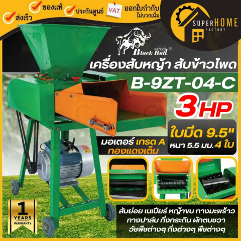 เปลี่ยนงานสับหญ้าและสับข้าวโพดให้เป็นเรื่องง่าย รวดเร็ว และปลอดภัยยิ่งขึ้นด้วย BLACK BULL เครื่องสับหญ้า สับข้าวโพด พร้อมกรวยบน รุ่น B-9ZT-04-C รุ่นยอดนิยมสำหรับเกษตรกร ฟาร์มโค-กระบือ ฟาร์มแพะ-แกะ และผู้เลี้ยงสัตว์ที่ต้องการเครื่องสับหญ้าทนทาน ใช้งานคุ้มค่า ช่วยประหยัดแรงและเวลา