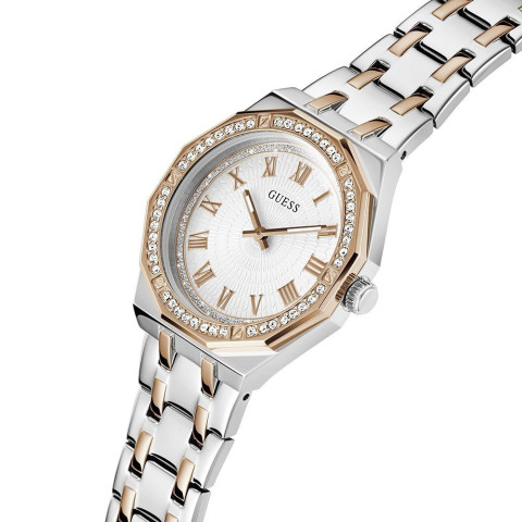 เติมเสน่ห์ให้ลุคของคุณโดดเด่นทุกวันด้วย GUESS นาฬิกาข้อมือ รุ่น DESIRE GW0770L5 สีเงิน นาฬิกาดีไซน์เรียบหรู สไตล์โมเดิร์น ที่ผสานความหรูหราของโทนทองและโรสโกลด์เข้ากับความคลาสสิกของสายสแตนเลสสีเงินได้อย่างลงตัว เหมาะสำหรับสุภาพสตรีที่ต้องการลุคสุภาพ ดูดี และมีระดับ ทั้งในวันทำงานและวันสบาย ๆ