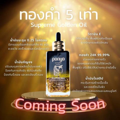 สัมผัสผิวสวยอ่อนเยาว์ราวย้อนวัยด้วย ✨Supreme Golden Moringa Oil! 100ml น้ำมันบำรุงผิวหน้าสูตรเข้มข้นที่ผสานพลังของ น้ำมันมะรุมบริสุทธิ์ เข้ากับ ทองคำบริสุทธิ์ 99.99% 24K เข้มข้นมากขึ้นถึง 5 เท่า พร้อมสารบำรุงที่คัดสรรมาอย่างพิถีพิถัน เพื่อยกระดับผิวของคุณให้ดูเนียนละเอียด กระจ่างใส และมีออร่าอย่างเป็นธรรมชาติ