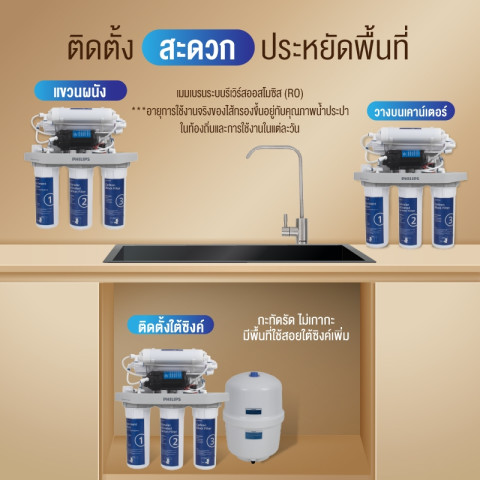 ดื่มน้ำสะอาด มั่นใจทุกแก้วได้ทุกวันด้วย Philips water AUT9510 เครื่องกรองน้ำดื่ม 5 ขั้นตอน ระบบรีเวิร์สออสโมซิส (RO) แบบติดตั้งใต้อ่างล้างจาน ที่ออกแบบมาเพื่อตอบโจทย์ครัวเรือนยุคใหม่ ทั้งเรื่องความสะอาดของน้ำ ความปลอดภัย และความสะดวกในการใช้งาน พร้อมบริการติดตั้งฟรีในเขตกรุงเทพฯ และปริมณฑล*