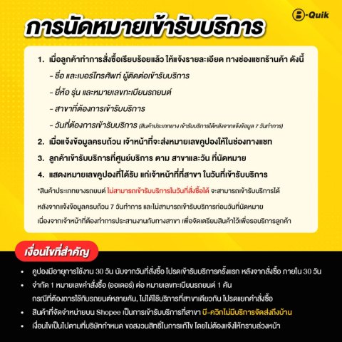 นำหมายเลขคูปองไปแสดงที่สาขา B-Quik ที่ลูกค้าเลือก เพื่อเข้ารับบริการ (ไม่มีบริการจัดส่งยางถึงบ้าน)