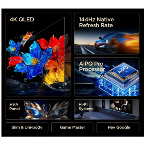 TCL รุ่น 75T8C (75") QLED TV 144 Hz Google TV (รุ่นปี 2025) ทีวีจอใหญ่ระดับพรีเมียมที่ยกระดับทั้งความบันเทิงและการเล่นเกม ด้วยเทคโนโลยี Colorful Quantum Crystal ให้สีสันสดใสสมจริงกว่าเดิม แสดงเฉดสีได้มากกว่า 1,000,000,000 สี และครอบคลุมขอบเขตสีสูงถึง 93% DCI-P3 ภาพคมชัดระดับ 4K HDR PRO พร้อมดีไซน์ ไร้ขอบ สวยโดดเด่นในทุกมุมมอง