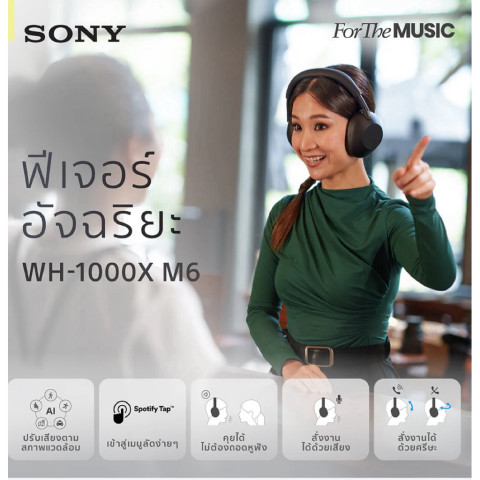 พร้อมส่ง (New) Sony WH-1000XM6 อันดับ 1 หูฟังตัดเสียงรบกวนไร้สายแบบครอบหู (Over-Ear Wireless) มาตรฐานเรือธงสำหรับคนรักเสียงเพลงและสายทำงานที่ต้องการความเงียบแบบพรีเมียม ในราคาพิเศษ 12,250.00 บาท ดีไซน์สวมใส่สบาย น้ำหนักเบาเพียง 254 กรัม กระชับพอดี ไม่กดทับ ใส่ได้ยาวตลอดวัน