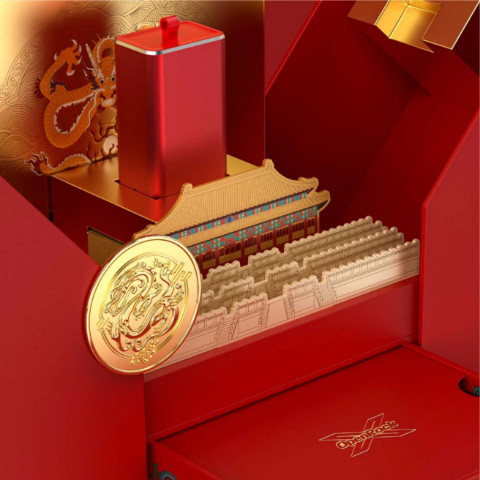 แพ็กเกจลิมิเต็ดสุดอลังการ ลายมังกรปั๊ม 3 มิติ + ปั๊มนูนสีทอง พร้อมงานกระดาษแกะสลัก 3 มิติ Forbidden City