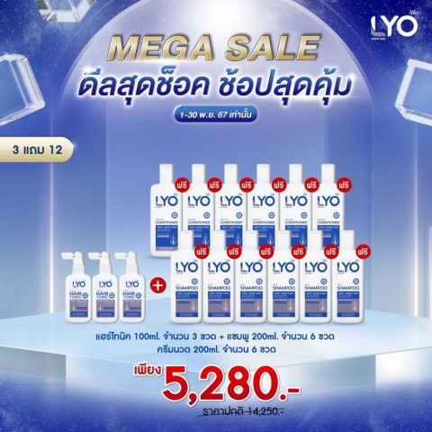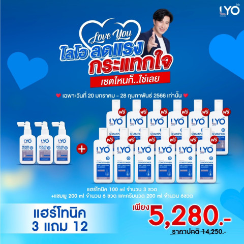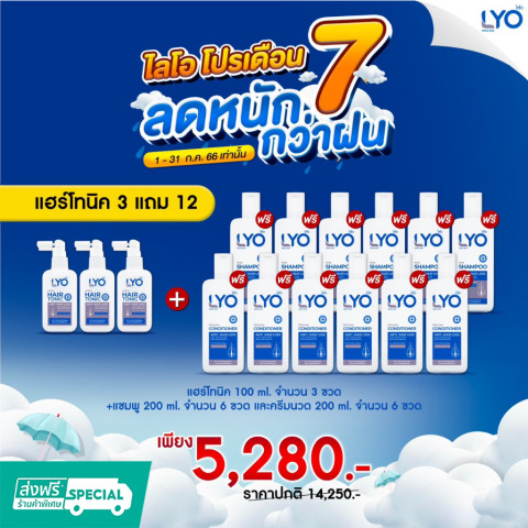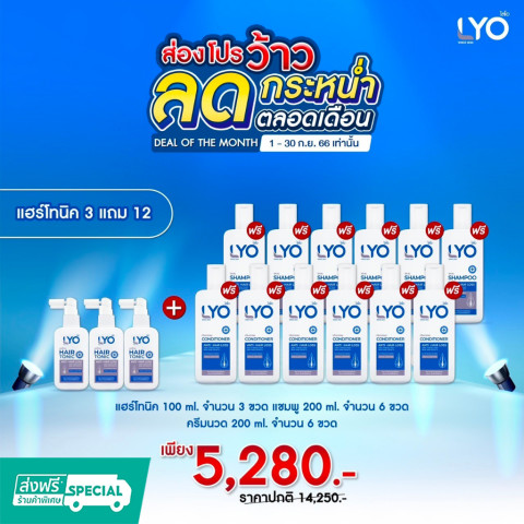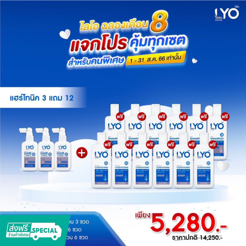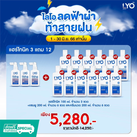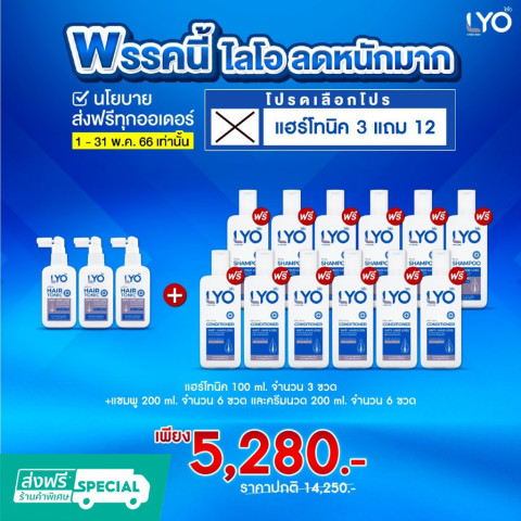 Lyo แฮร์โทนิค 3แถม12 เซ็ตดูแลเส้นผมและหนังศีรษะแบบจัดเต็ม คุ้มค่าในชุดเดียว เหมาะสำหรับผู้ที่ต้องการบำรุงหนังศีรษะควบคู่กับการทำความสะอาดและฟื้นฟูเส้นผมให้ดูสุขภาพดี ใช้ต่อเนื่องได้ยาว ๆ ทั้งบ้าน