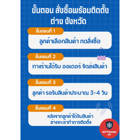 กรุงเทพฯ และใกล้เคียง ทีมช่างจัดส่งและติดตั้งภายใน 1-2 วันทำการ (ไม่รวมอาทิตย์/วันหยุดนักขัตฤกษ์)