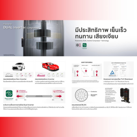 Dual Inverter Compressor โรตารี่คู่ ทำงานนิ่ง ประหยัดไฟ และเย็นเร็ว (เร่งความเย็นได้ไว และลดการใช้พลังงานเมื่อคงอุณหภูมิ)