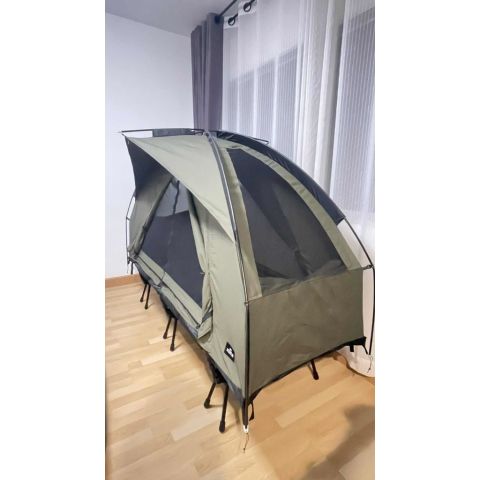 Kenji Cot Tent เต็นท์เตียงสนาม (Kenji x Berjack) เต็นท์เตียงสนามสายลุยที่รวม “เต็นท์ + เตียงสนาม” ไว้ในชุดเดียว นอนสบายยกพื้น ลดความชื้นจากพื้นดิน พร้อม Rainfly ช่วยกันฝนและลม เหมาะสำหรับแคมป์ปิ้ง เดินป่า หรือทริปค้างคืนที่ต้องการความคล่องตัวและความมั่นใจเรื่องสภาพอากาศ