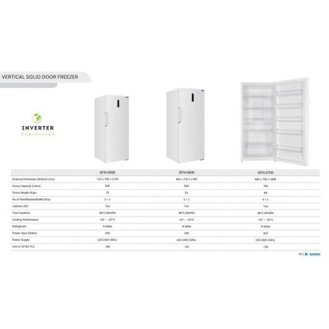 ตู้แช่แข็งฝาทึบ แบบยืน 1 ประตู SANDEN รุ่น SFN-0600 (21.2 คิว) ราคา 19,702.70 บาท