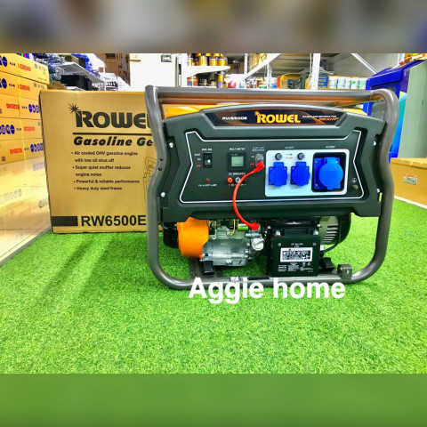 ROWEL เครื่องปั่นไฟเบนซิน รุ่น RW-6500E กำลังไฟสูงสุด 5,500 วัตต์ (ใช้งานปกติ 5,000 วัตต์) เครื่องยนต์เบนซิน 4 จังหวะ 13 แรงม้า ให้ไฟ 1 เฟส 220V 50Hz กระแสไฟค่อนข้างนิ่ง เหมาะสำหรับใช้งานทั่วไปทั้งในบ้าน ร้านค้า ไซต์งาน รวมถึงเป็นรุ่นยอดนิยมสำหรับ ชาร์จโดรนเกษตร/โดรนพ่นยา ใช้งานสะดวกด้วยระบบสตาร์ท ได้ทั้งเชือกดึงและกุญแจสตาร์ท