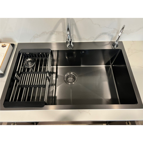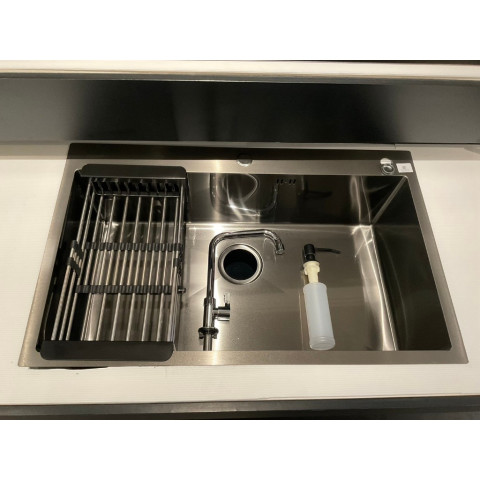 อ่างล้างจาน 1 หลุม ดีไซน์สวยงาม โทนดำเข้ากับครัวสไตล์โมเดิร์น