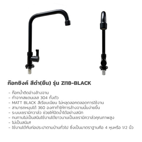 แถมฟรี ก๊อกซิงค์สีดำแบบยืน รุ่น ZI18-BLACK พร้อมใช้งาน