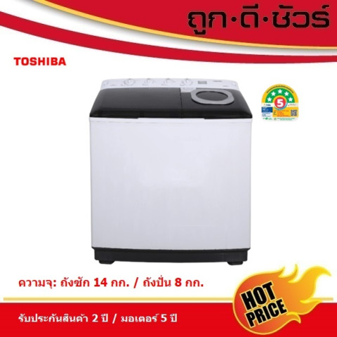 TOSHIBA เครื่องซักผ้า 2 ถัง รุ่น VH-Q150MT ขนาดถังซัก 14 กก. / ถังปั่น 8 กก. ตอบโจทย์บ้านที่ซักผ้าปริมาณมาก ซักและปั่นแยกถังใช้งานสะดวก ควบคุมงานซักได้ตามต้องการ พร้อมวัสดุตัวถังโพลิเมอร์คุณภาพสูง แข็งแรงทนทาน ไม่เป็นสนิม และทำความสะอาดง่าย ในราคา 5,113.60 บาท