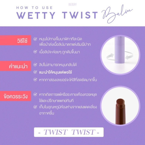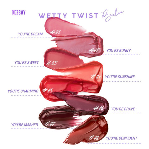 [ของแถมคละสี] DEESAY : WETTY TWIST BALM ลิปปากเปียกเนื้อ Light Balm ที่ให้ริมฝีปากดูอวบอิ่ม ฉ่ำวาวแบบ Glossy พร้อมช่วยจบทุกปัญหาลิปบาล์มเดิม ๆ—ทาแล้วสวยสบายปาก สีชัด กลบสีปากได้ดี และยังช่วยบำรุงให้ริมฝีปากชุ่มชื้นดูสุขภาพดีตลอดวัน