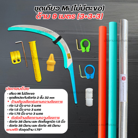 ชุดเคียว Mi ครบเซ็ตพร้อมด้าม 3-9 เมตร พร้อมลุยงานตัดแต่งกิ่ง/เกี่ยวใบ/ตัดหญ้าสูงได้สะดวกยิ่งขึ้น ด้วยด้ามอลูมิเนียมอัลลอยด์น้ำหนักเบา แข็งแรง ทุ่นแรง ใช้งานคล่อง ประกอบง่าย “พร้อมใช้งานทันที” ของแท้นำเข้าจากมาเลเซีย 100% และพิเศษ แถมฟรี!! ตัวอุดด้าม (ตามขนาดชุดที่เลือก)