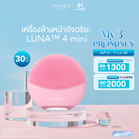 FOREO LUNA 4 mini Pearl Pink เครื่องล้างหน้าอัจฉริยะสีชมพูอ่อน ขนาดมินิจับถนัดมือ ที่มอบประสิทธิภาพการทำความสะอาดแบบล้ำลึกพร้อมการนวดผ่อนคลายในเครื่องเดียว ช่วยให้ผิวดูสะอาดใสขึ้นอย่างรู้สึกได้ และช่วยเตรียมผิวให้พร้อมรับสกินแคร์เพื่อการซึมซาบที่ดียิ่งขึ้น