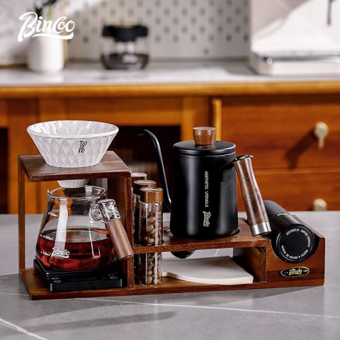 ปินคู ไม้เนื้อแข็งมือชงชุดผู้ถือกาแฟสำหรับใช้ในครัวเรือน ชุดอุปกรณ์จัดระเบียบมุมกาแฟที่ออกแบบมาเพื่อคนรักกาแฟดริปโดยเฉพาะ ช่วยให้การชงเป็นระเบียบ หยิบใช้ง่าย และจัดเก็บอุปกรณ์ได้ครบในที่เดียว เหมาะสำหรับวางบนเคาน์เตอร์ครัว โต๊ะกาแฟ หรือมุมบาริสต้าในบ้าน ให้บรรยากาศเรียบเท่แบบมินิมอลด้วยโทนสีดำ