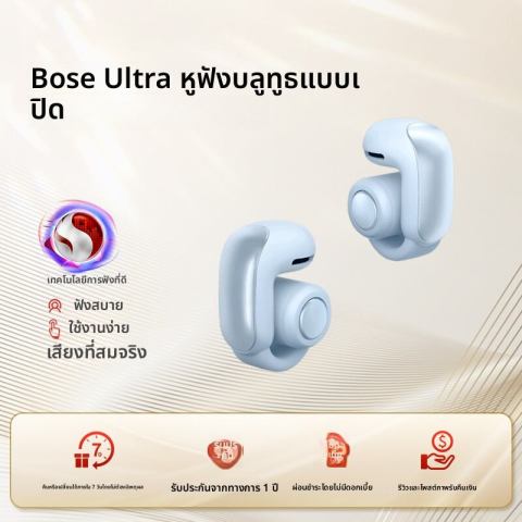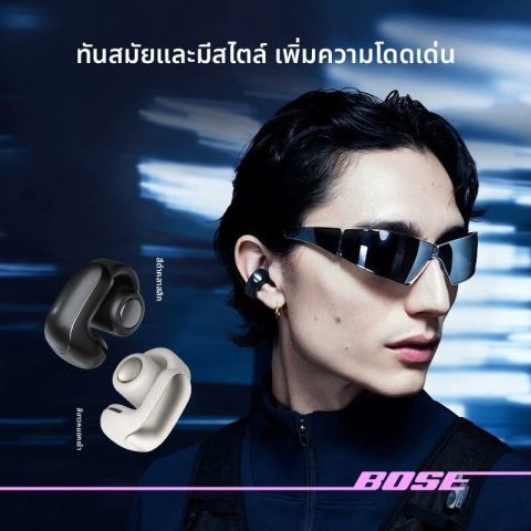 Bose | หูฟังไร้สายแบบเปิดหู Bluetooth เสียงพื้นที่ แบตเตอรี่ใช้งานยาวนาน คือคำตอบสำหรับคนที่อยากได้ “เสียงดีแบบ Bose” พร้อมความสบายในการสวมใส่และการรับรู้สภาพแวดล้อมรอบตัวไปพร้อมกัน ดีไซน์แบบเปิดหูช่วยให้ฟังเพลง/พอดแคสต์ได้โดยไม่ตัดขาดจากเสียงรอบข้าง เหมาะทั้งวันทำงาน ออกกำลังกาย เดินทาง และกิจกรรมกลางแจ้ง