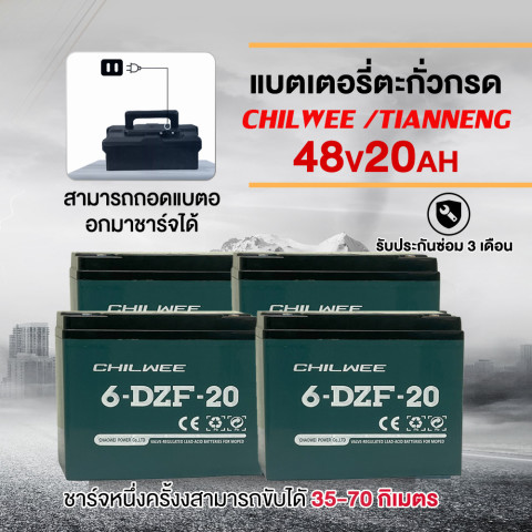 แบตเตอรี่: 48V 20Ah (ถอดแบตชาร์จได้) / จัดส่งแบตแบบสุ่ม CHILWEE หรือ TIANNENG