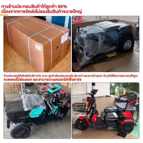 ประกอบให้ 95% ลูกค้าประกอบเพิ่มเพียงเล็กน้อย (โดยทั่วไป: หัวรถ/ล้อหน้า/ตะกร้า) พร้อมใช้งานได้ไว เหมาะสำหรับคนที่อยากได้รถไฟฟ้าสามล้อที่คุ้มค่าและใช้งานจริง