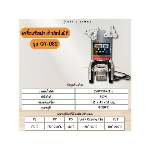 PMS SHOPPING เครื่องซีลฝาแก้วพลาสติก แบบ Full Automatic รุ่น QY-08S ราคา 10,500.00 บาท