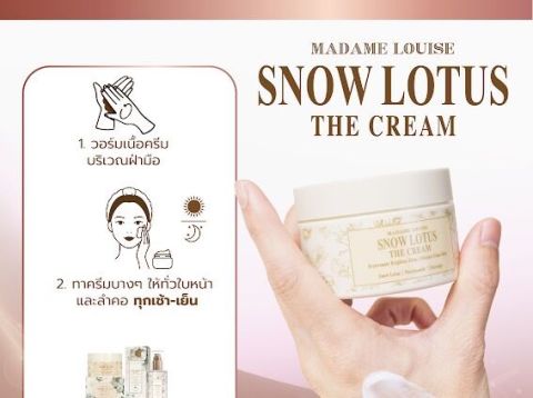 ครีมบัวหิมะของแท้ มาดามหลุยส์ เดอะครีม Madame Louise Snow Lotus The Cream ขนาด 50 กรัม (กระปุก) ดูแลผิวให้ดู อิ่มฟู เด้งใส พร้อมช่วยให้ผิวดูเรียบเนียนขึ้น เหมาะสำหรับผู้ที่กังวลเรื่อง ริ้วรอย ฝ้า กระ และผิวหมองคล้ำ ให้ผิวแลดูสุขภาพดีแบบเป็นธรรมชาติ