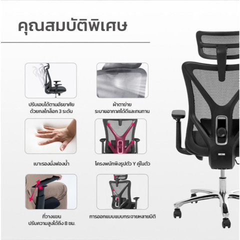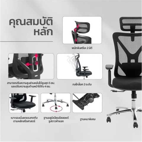 ปรับเอนหลังได้ 90–135 องศา (สูงสุด 3 ระดับ) และ ล็อกได้
