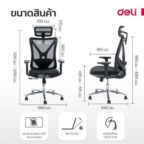 เลือก Deli Office Chair เพื่อประสบการณ์การนั่งทำงานที่สบายกว่า ปรับได้ครบ ระบายอากาศดี รองรับน้ำหนักเยี่ยม พร้อมการรับประกันมั่นใจ 1 ปี