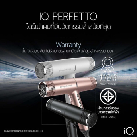 GAMA ไดร์เป่าผม IQ1 / IQ2 PERFETTO ไดร์ระดับมืออาชีพจากอิตาลี ดีไซน์มินิมอลล้ำสมัย จับถนัดมือด้วยรูปทรงตามหลักสรีรศาสตร์ น้ำหนักเบามากแต่ให้พลังลมแรง ช่วยลดเวลาเป่าผมแห้งลงได้สูงสุด 30% ตอบโจทย์ทั้งช่างทำผมและคนรักผมที่ต้องการงานเป่าที่เร็ว เนียน และผมดูสุขภาพดีในทุกวัน