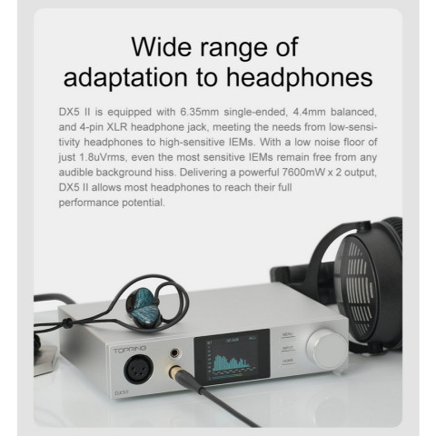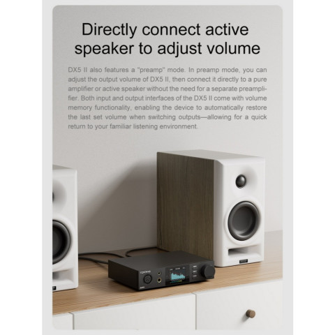 ยกระดับระบบเสียงเดสก์ท็อปให้คมชัดและทรงพลังด้วย Topping DX5II DAC/AMP ตั้งโต๊ะที่อัปเกรดภาคแปลงสัญญาณด้วย ชิป ESS ES9039Q2M แบบคู่ (x2) ผสานวงจรแอมป์ X-Hybrid ให้รายละเอียดเสียงครบถ้วน ไดนามิกดี ขับหูฟังได้มั่นใจ พร้อมรองรับ Dual Hi-Res สำหรับการฟังเพลงคุณภาพสูงจากหลากหลายแหล่งสัญญาณ